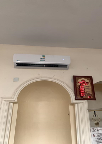 جمعية عمارة بيوت الله وبرعاية منصة إحسان تقوم بصيانة واستبدال المكيفات والتهوية وصيانة واستبدال الصوتيات لجامع الفرحان في خيبر