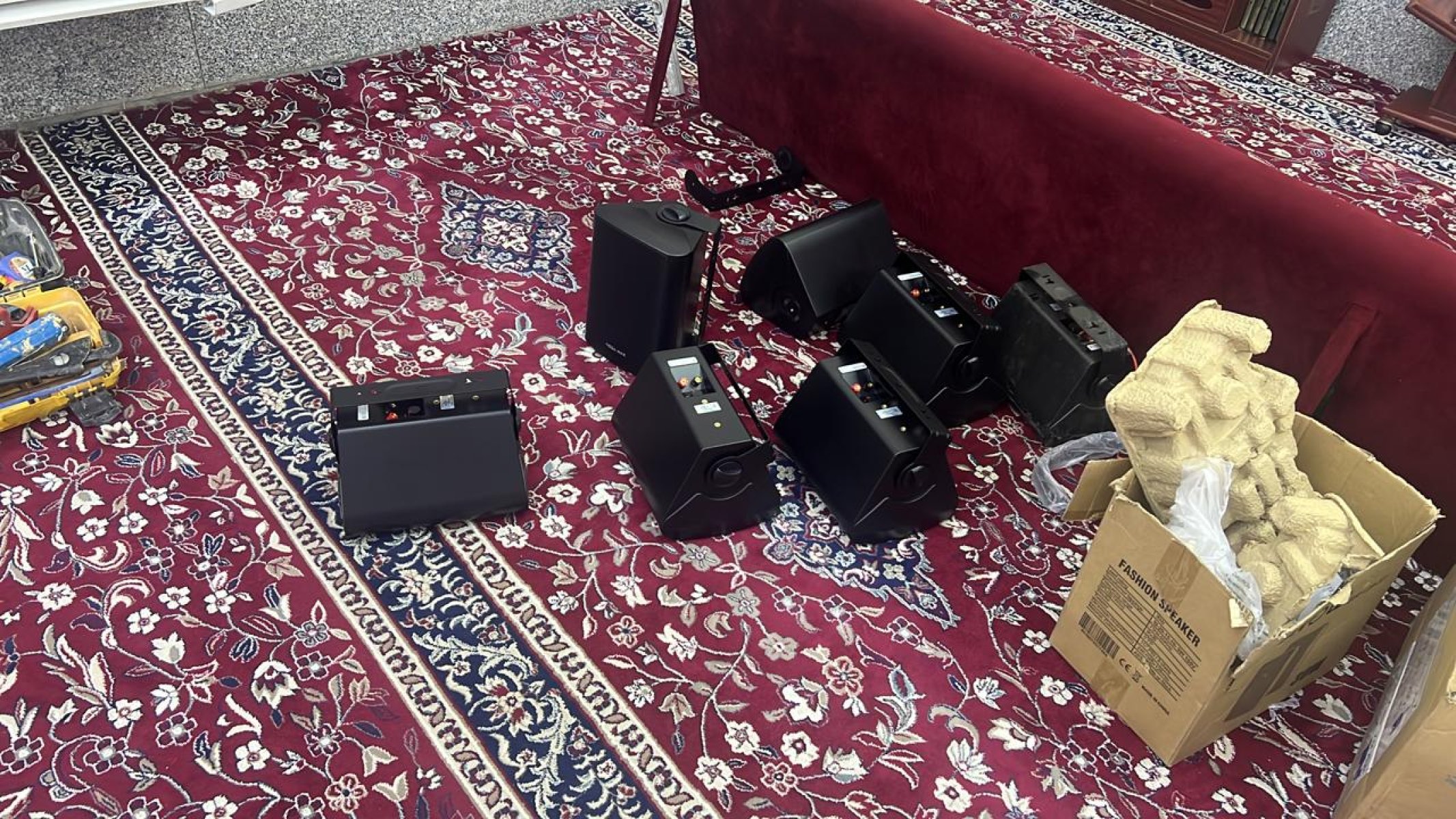 جمعية عمارة بيوت الله وبرعاية منصة إحسان تقوم بفرش واستبدال السجاد والموكيت وتركيب تكايات ظهر وصيانة واستبدال الصوتيات لجامع مشوقة