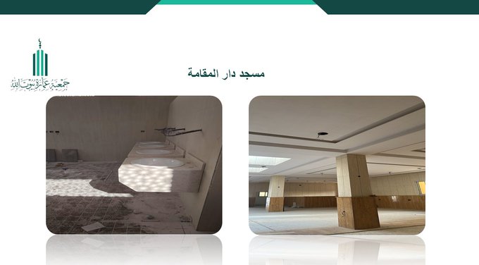 أعمال البناء في مسجد دار المقامة، حيث شملت الأعمال تركيب الرخام داخل المسجد، بالإضافة إلى تركيب مغاسل الرخام في دورات المياه.
