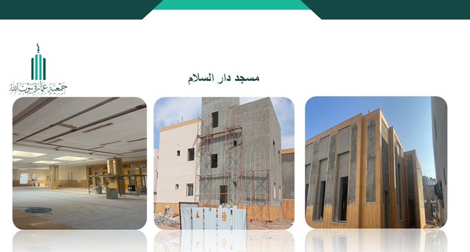 أعمال البناء في مسجد دار السلام ؛ الانتهاء من تركيب الرخام للواجهات الخارجية وللأجزاء الداخلية من المسجد، كما بدأ العمل على تركيب ألواح الطين للواجهات الداخلية والخارجية ضمن مراحل التشطيب للمشروع.