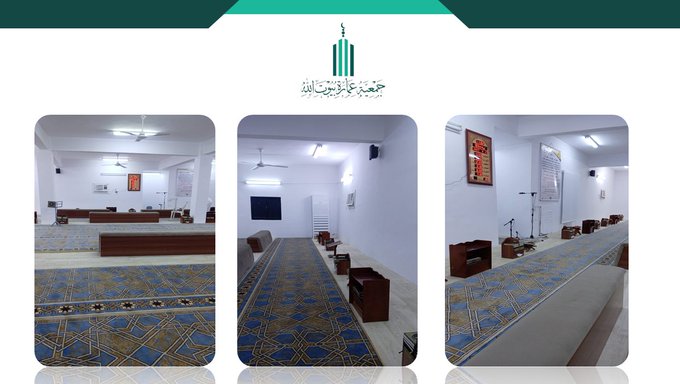 جمعية عمارة بيوت الله وبرعاية منصة احسان تقوم باستبدال وتغير السجاد والموكيت والتكايات واستبدال مكيف دولابي وصيانة الصوتيات وتوريد ساعة ودواليب المصاحف لمسجد حامد السهلي باليتمه