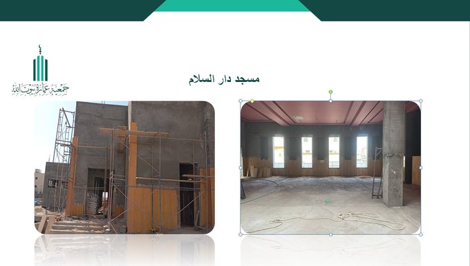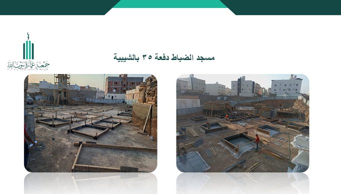 تنفيذ أعمال النجارة والحدادة الخاصة بالقواعد لمسجد الضباط دفعة ٣٥ بالشيبية، وذلك ضمن مراحل تنفيذ الهيكل الإنشائي للمسجد